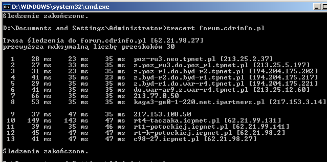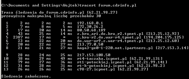 problem w tym, że u mnie i kilku osób, których pytałem zarówno strona główna, jak i forum chodzą bez problemu. Powiedziałbym nawet, że śmigają jak rakieta, więc to nie może być problem sprzętowy, bo wtedy tak samo powinno się ślimaczyć. Jedyne co mi przychodzi do głowy, to jakieś wąskie gardło (może celowo znowu przez tepse zrobione) między Wami, a Poznaniem, gdzie stoi nasz serwer. Proszę o wklejenie kilku traceroutów i zobaczymy, jak to wygląda. |