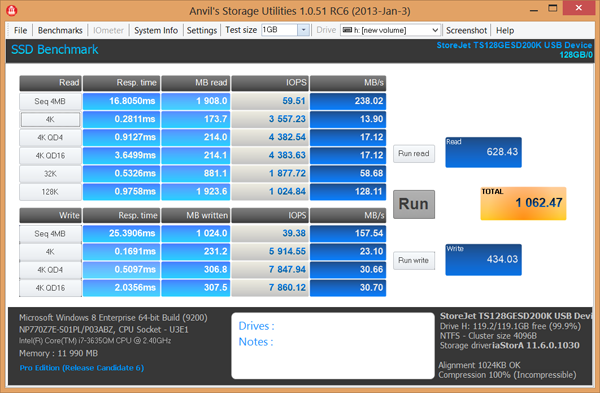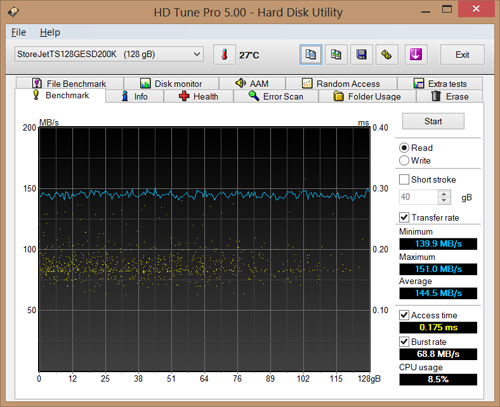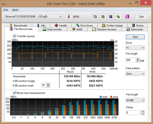 Test Transcend ESD200 (TS128GESD200K) 128 GB, USB 3.0