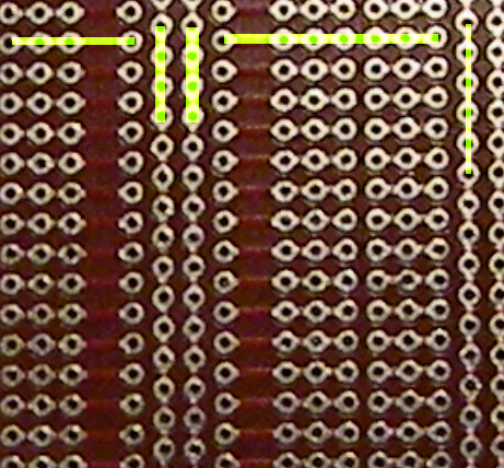 1.) Czy te ścieżki łączą się ze sobą na tej płytce tak jak ja to zaznaczyłem na zielono? Wziąłem się za lutowanie i dopiero to zauważyłem (choć pewien nie jestem)...