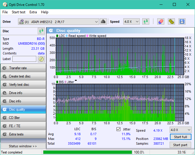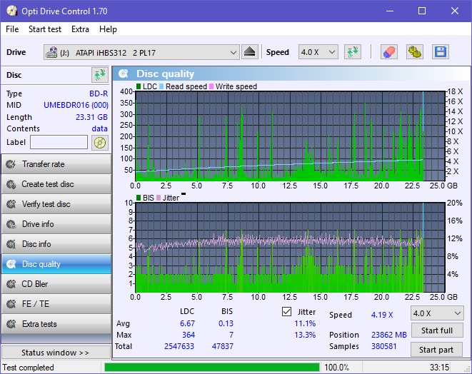 Branded OPTODISC R016 (Made in Taiwan) BDR-UD03FAL (1.00) @ 2x (the only supported speed) ![]() ![]() ![]() ![]() ![]() ![]() ![]() ![]() ![]() ![]()