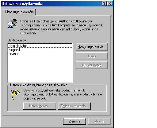 ![]() I tak samo po restarcie w panelu sterowania czy masz na pewno na win95/98 stworzonych uzytkownikow.