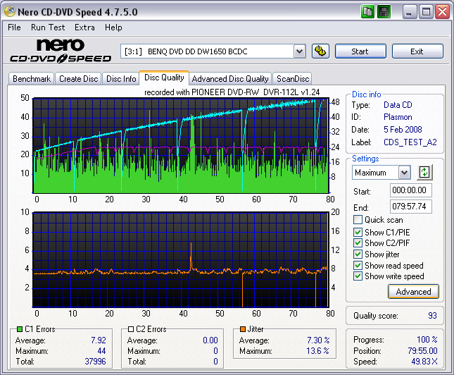 PIONEER DVR-112L (A12J) 1.24 PLEXTOR PX-716A 1.11 LITE-ON LH-20A1P KL0P BENQ DW 1650 BCDC |