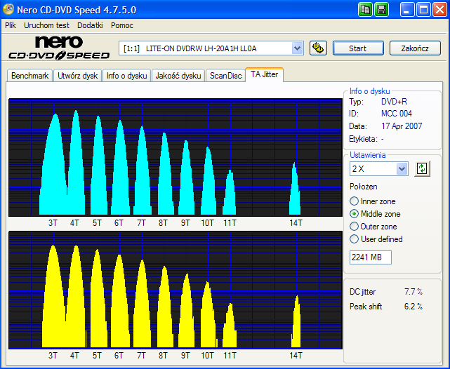 ![]() Ta sama tacka i prędkości zapisu DL i CD. Typowe dla Pioneera 212. ![]()