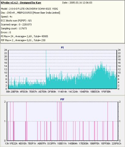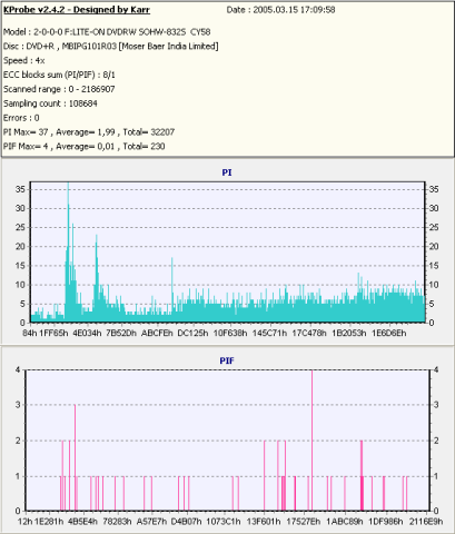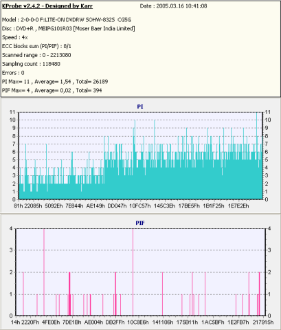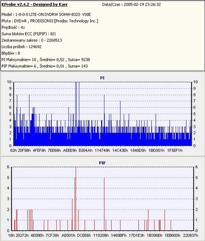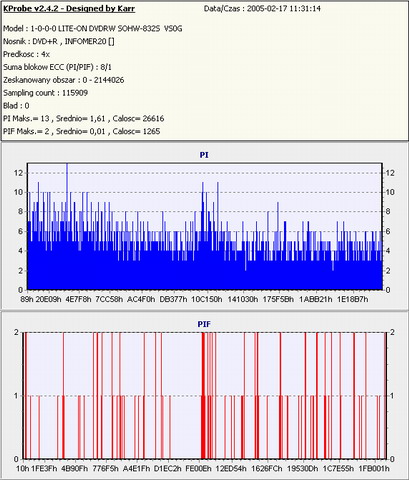 Dzisiaj mój litek 832s sprawił, że wyrzuciłem do kosza płytkę DVD+R DL Verbatim. Nagrywarki na razie nie wyżuciłe. Nagrywałem na biosie VS0G z zaznaczonym bitsettingiem. Mnóstwo błędów PI i PIF. Niestety nie dysponuję wykresem. Generalnie totalnie skopana została końcówka płyty. Po tym przykrym zdarzeniu podłączyłem nagrywarkę LG 1632B (chyba taki to symbol) i płyta (druga DL) nagrała się pięknie. Niewielkie błędy na pierwszym leyerze na drugim za to zero błędów.