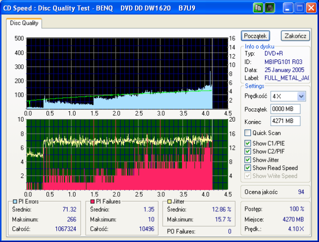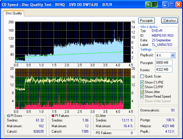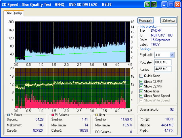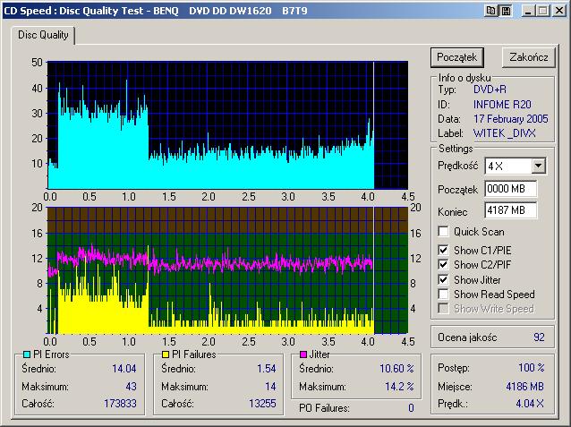Te płyty to PROFORMANCE sprawdzalem w nero płyte nagraną8x i mi na litku pokazało 77pkt a w BenQ 1620 pokazało 93pkt .Troche dziwne.