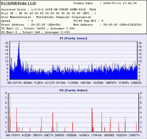 Oto nagrana specjalnie płyta DVD+R TDK (RICOH Company Limited) Temperatura wewnątrz komputera 32 C , wilgotność względna 54% mierzona elektronicznie. Plik 4,29 GB. Start 0-225454h. PI średnie 0,50 max 8 ilość wszystkich błędów 8024, PIF średnie 0,00 max 2 ilość wszystkich błędów 195, Suma wszystkich błędów 8219. Te wyniki są wielokrotnie mniejsze od przedstawianych na forum. Nagrywarka LiteOn 812@832 V08. Komputer złożony z najlepszych komponentów dostępnych na rynku polskim. Pozdrawiam, zapraszam do dyskusji. |