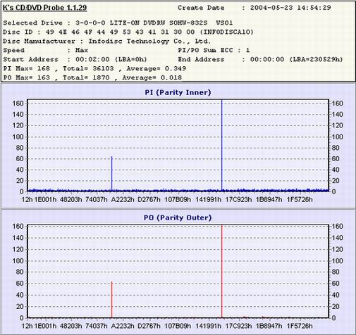Ja rowniez przemienilem swoja 812S na 832S. Zrobilem nstepujacy test. Wziolem plyte DVD+RW PLATINIUM x4 jeszcze nagrana na 812S i dodatkowo "przerobiona na DVD-ROM i przeczytalem ja juz w 832S. Oto wyniki: