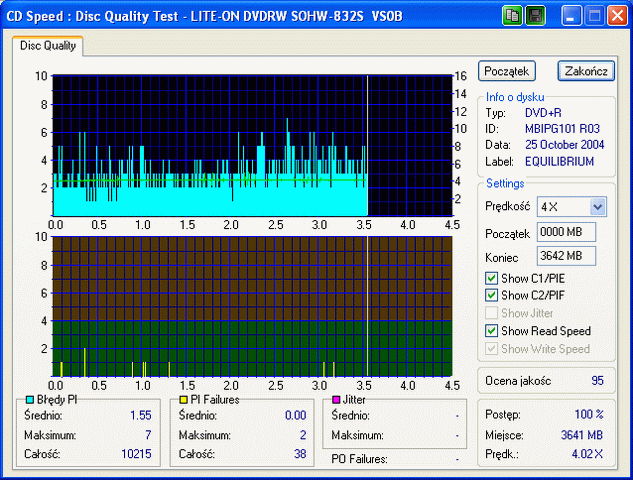 Aktualnie nie posiadam tej płytki, ale poniżej przedstawiam wykres kolejnej. Na płycie nagrany jest ten sam materiał zajmuje około 3,5GB