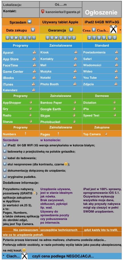 Dodatkowo chciałbym też zobaczyć fotki urządzenia, ba pewnie wiele osób które mogą być zainteresowane też by chciało zobaczyć jak wygląda twój iPad.