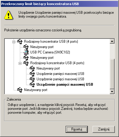 Po nierozwiązanych kłopotach z 7portowym hubem na chipsecie GL850A postanowiłem zakupić kolejny, tym razem na chipsecie NECa. Zainstalował się gładko, wszystkie 7 portów widoczne, na pozór zero problemów, niestety, do czasu. Podpiąłem kilka urządzeń naraz - HDD, kamerkę, 3 nagrywarki. Po kilku minutach wyskakuje taki komunikat: ![]() Losowo przełączam urządzenia pod różne porty, podpinam zewnętrzne zasilanie do huba, odpinam, kombinuję jak koń pod górkę, wciąż to samo. Najciekawsze jest to, że urządzenia są tylko podłączone, na żadnym nie odbywa się ani zapis, ani odczyt. Opcje wyłączania urządzenia w celu oszczędzania energii oczywiście odznaczone. Jakieś pomysły?