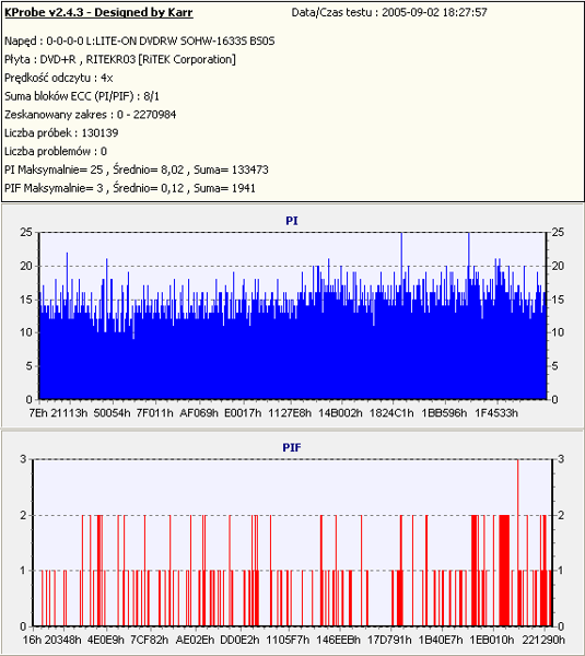 Wyniki testow. Prosze o komentarze odnosnie tych gorek na Verbatimach. Znajomy elektornik doradzil aby nasmarowac prowadnice glowicy napedu, ale musialbym go do tego rozebrac i tym samym utracilbym gwarancje. Te bulki to cytuje "problem z trackingiem, ktory laczy sie z trudnoscia w prowadzeniu wozka z glowica - trzeba nasmarowac 'prowadnice' / 'tuleje'". Prosze o sensowne komentarze.