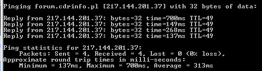 jou, troche malo tych pingow. A jak nie ma czkawki, to jak wygladaja pingi od Ciebie?