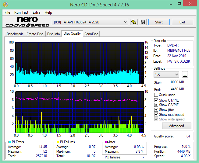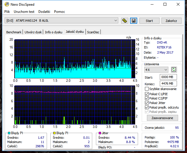 LG BH16NS55 1.02, ImgBurn x8: Załącznik 107420 k***a Z racji braku innego napędu pod ręką by sprawdzić jak "beznadziejne" płytki trafiłem wypaliłem na skanującym slimie PLDS DU-8A3S i okazuje się, że płytkom nic nie brakuje (ta sztuka spadła mi na podłogę przed paleniem i troszkę się zarysowała): PLDS DU-8A3S KD04, ImgBurn x4: Załącznik 107421 Większość testów tego LG z tego co widzę robiona jest na sofcie 1.00, czy tu może być pies pogrzebany? |