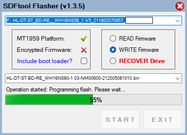 When the flashing is done, the drive will now have the UHD-enabled WH16NS58 1.V5 firmware. Załącznik 210431 |